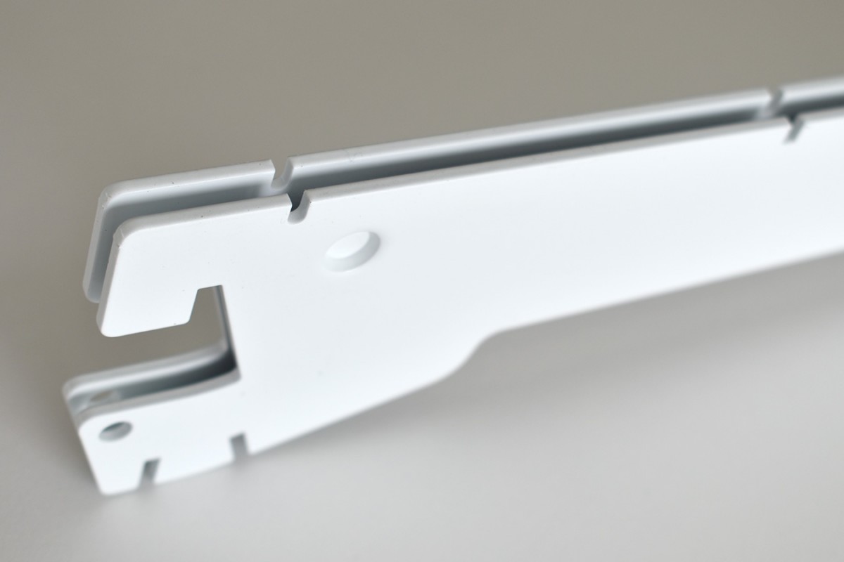 (nahrádza použitie 2 jednoduchých konzol) - na inštalovanie bočnice police (napr. na konci regálovej zostavy)