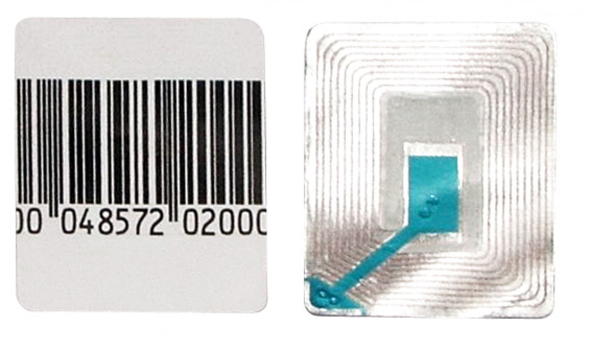 Papierová nálepná etiketa 8,2 MHz s čiarovým kódom.