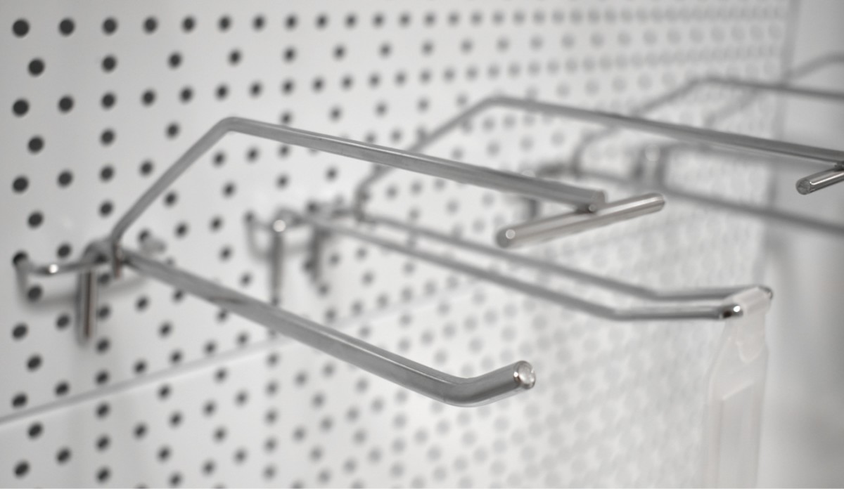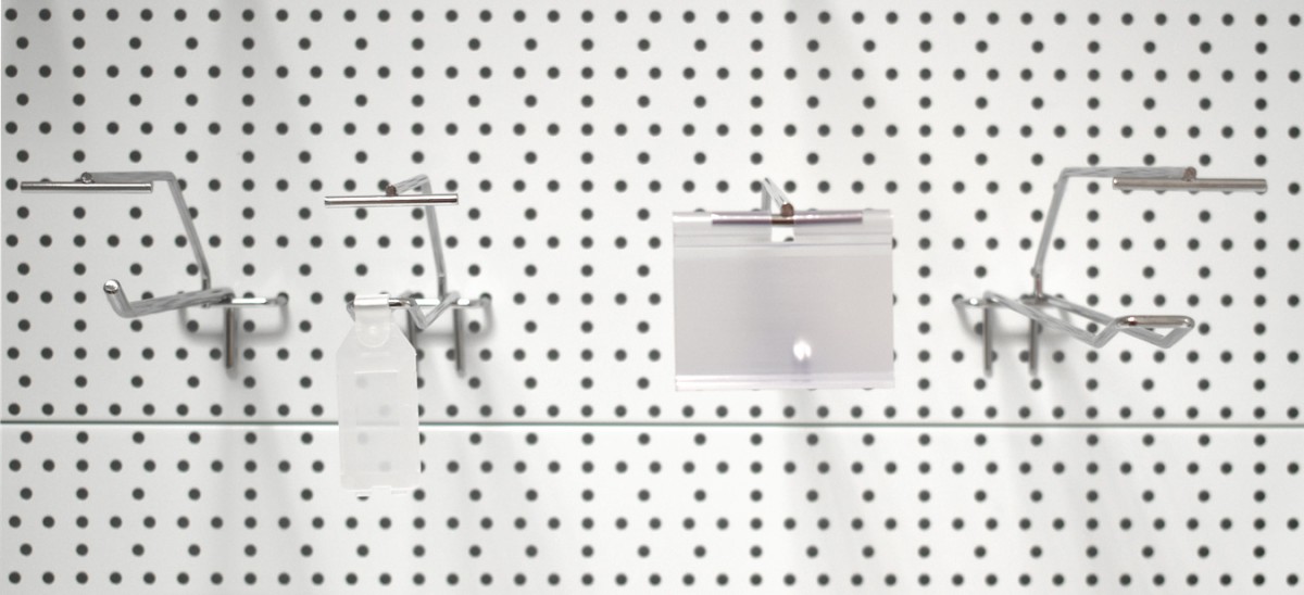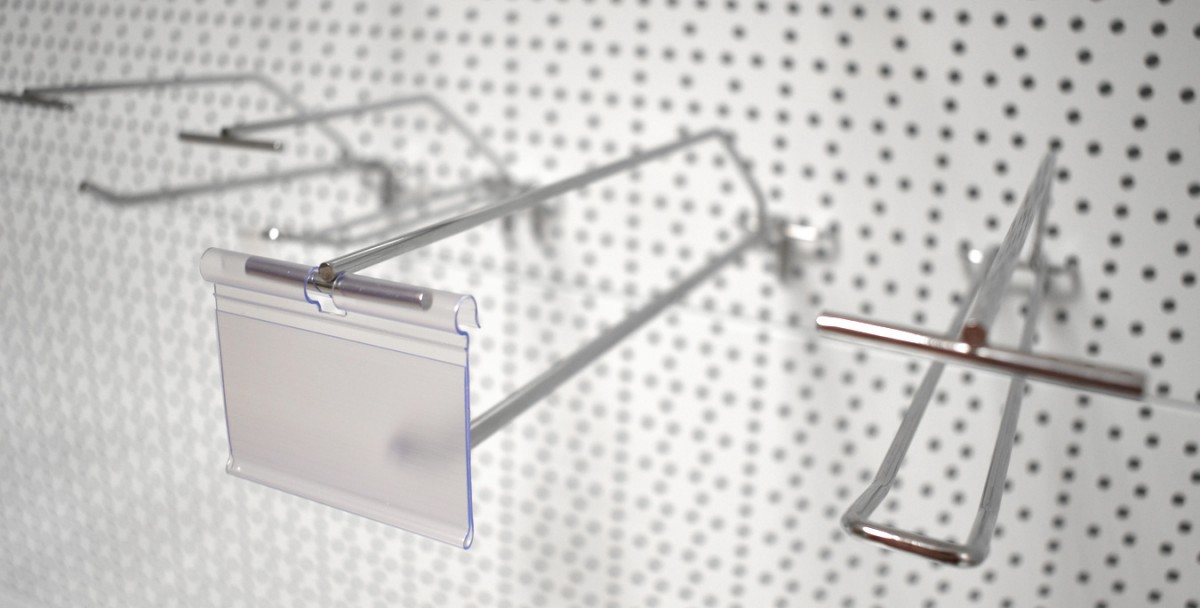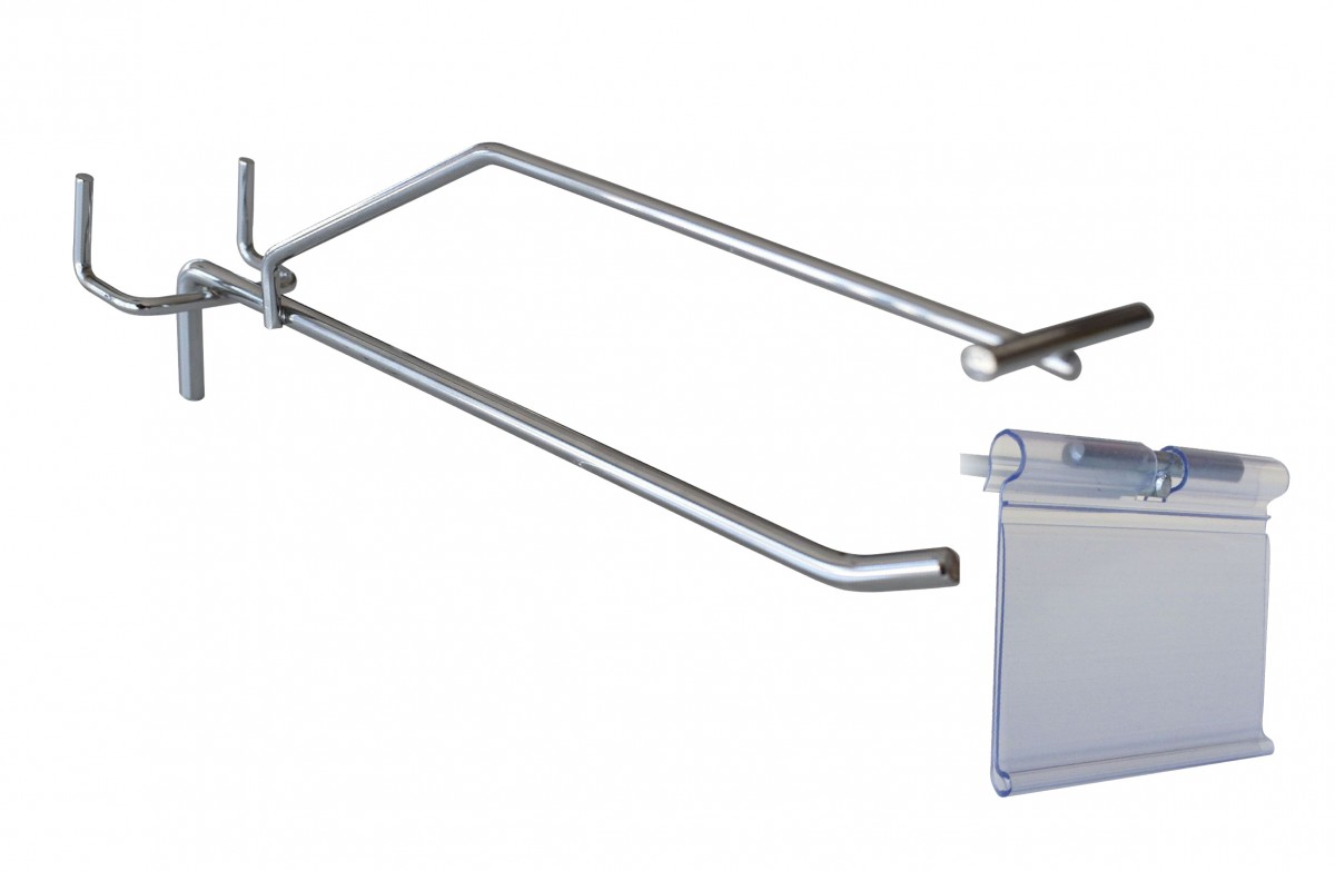 Háčik jednoduchý do Dierovaného panelu SU s prídavným držiakom cenovky a Cenovkovou lištou VIP 39x65.