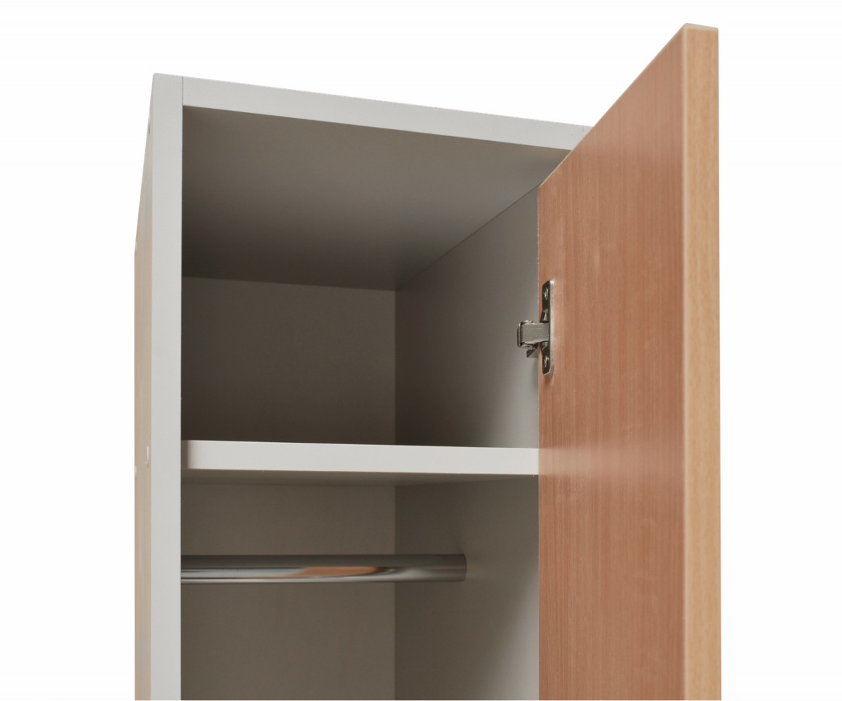 V cene 1x horná polica, 2x tyč na vešanie, 1x zámok, 1x úchytka.