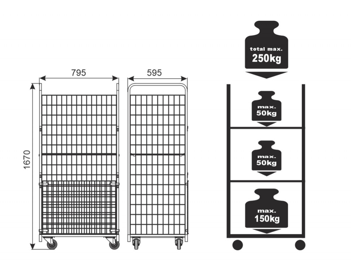 Kontajner je vyrobený z oceľového pozinkovaného drôtu v profilovanom ráme.