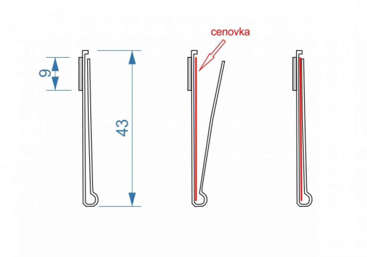 Odklopný predný priehľadný diel na ľahké vsúvanie cenoviek výšky 39 mm.