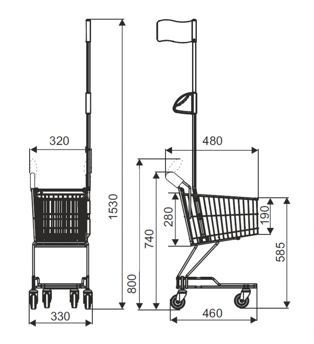 Detský nákupný vozík EKO bez spodného roštu.