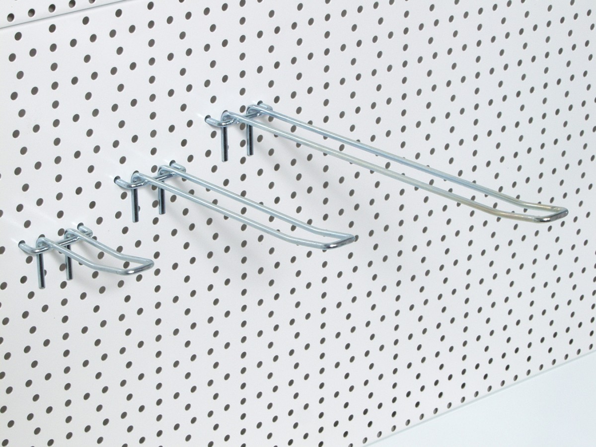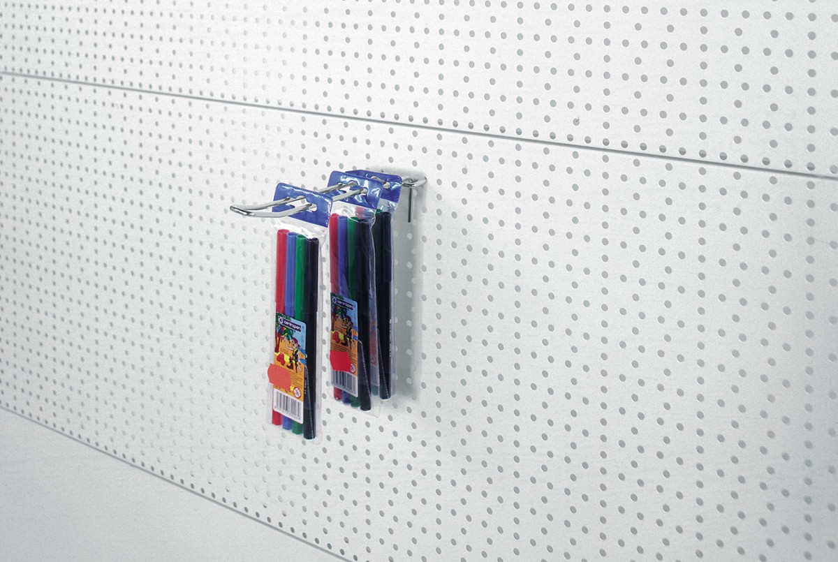 Panel má sústavu otvorov priemeru 5 mm, ktoré umožňujú upevniť háčiky s osovým rozmerom upevňovacích hákov: