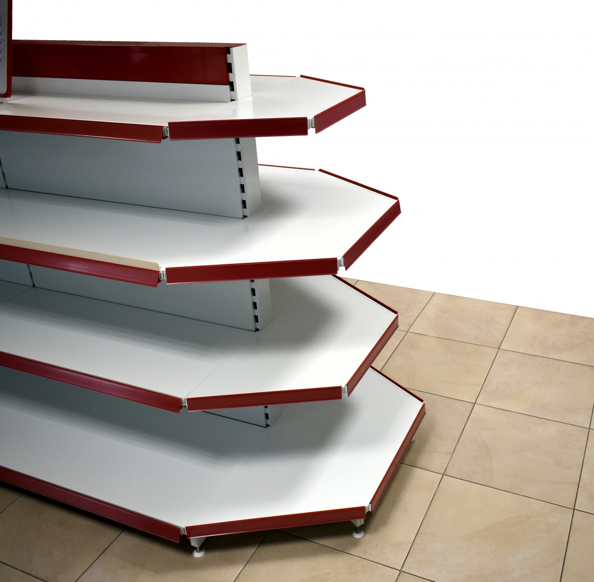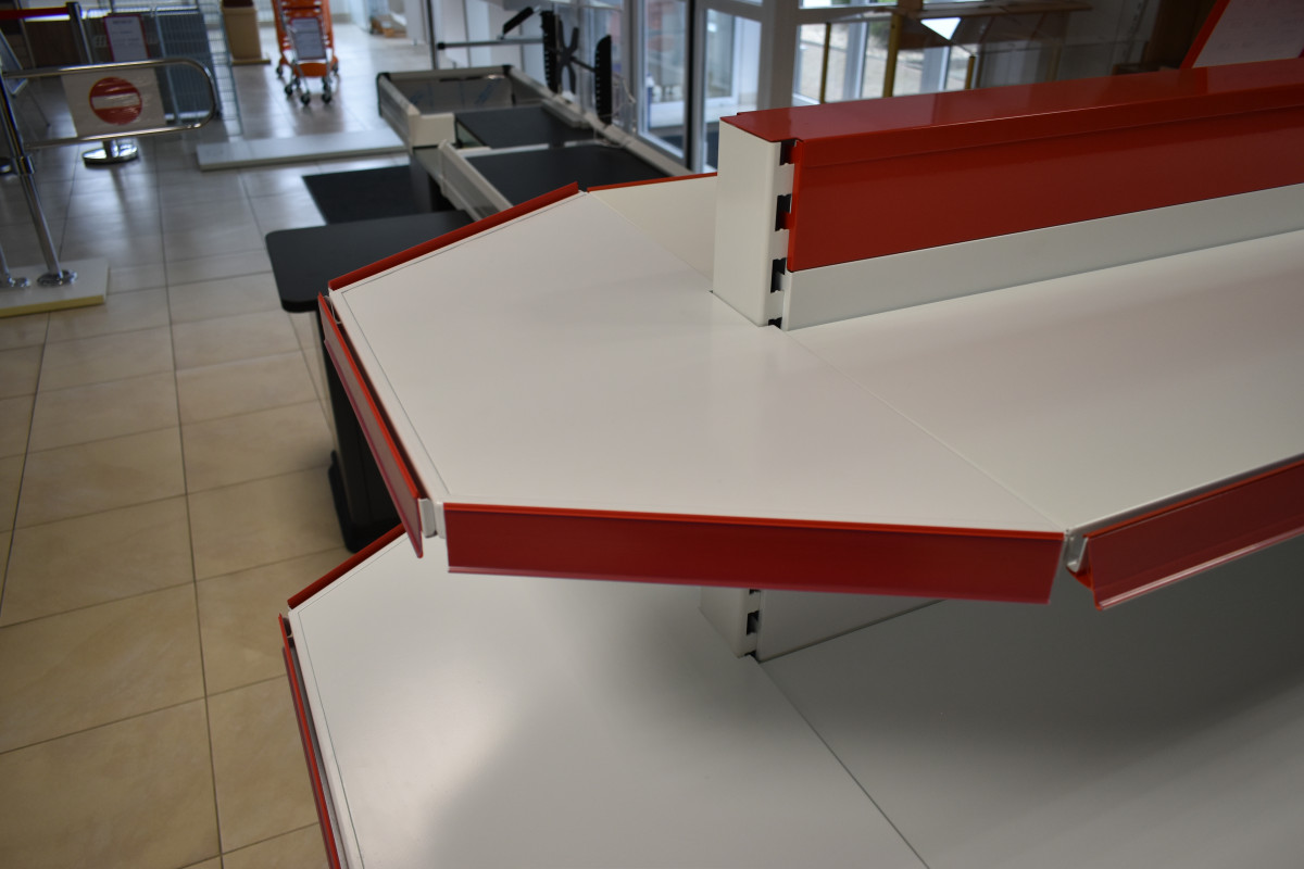 Polica lichobežníková pre lichobežníkové ukončenie obojstranného regálu SU (gondoly).