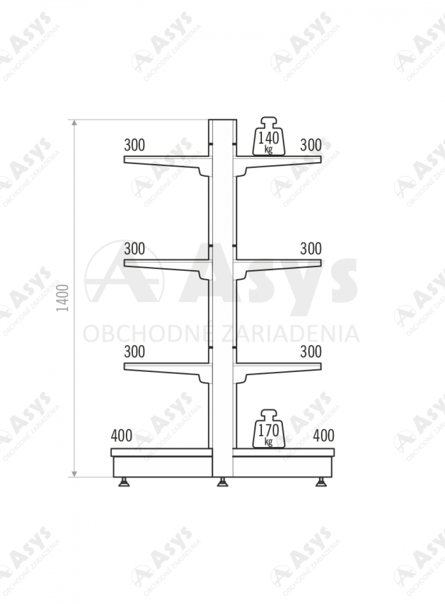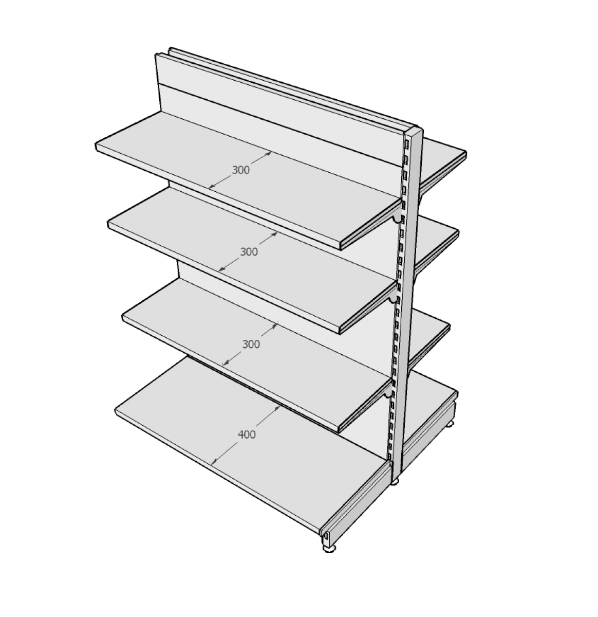 Ak súčasne objednávate aj lichobežníkové ukončenie regálu, potrebujete objednať inú verziu obojstranného regálu!