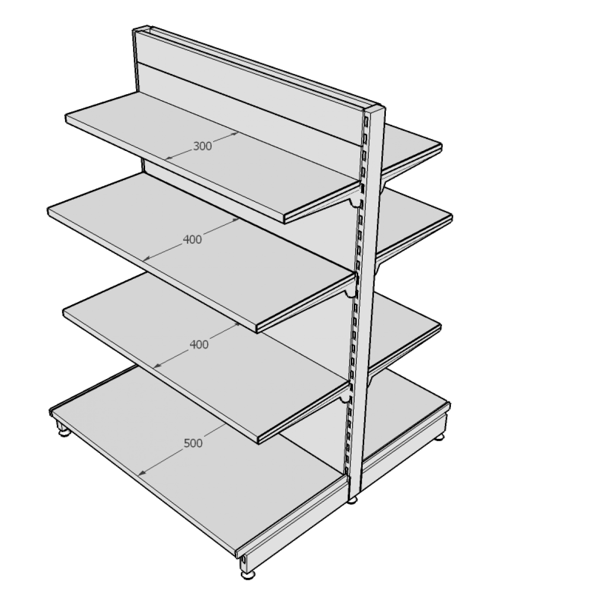 Ak súčasne objednávate aj lichobežníkové ukončenie regálu, potrebujete objednať inú verziu obojstranného regálu!