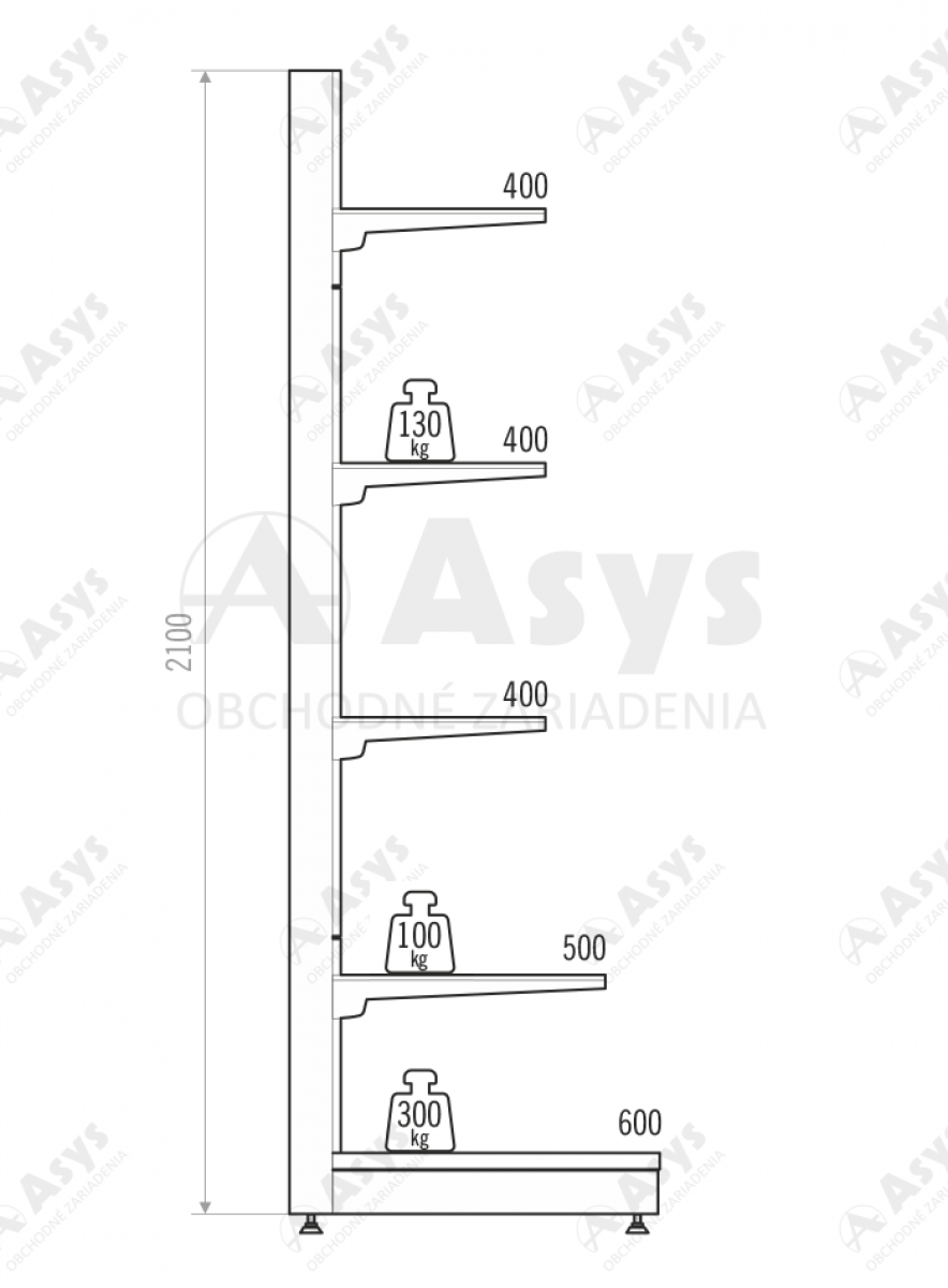 P - prípojný regál (nie je samostatne stojaci, je možné ho pripojiť iba k základnému regálu, resp. k regálovej zostave)