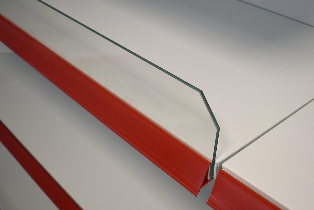 Čelná plexi zábrana pre police do univerzálneho obchodného regálu SU.