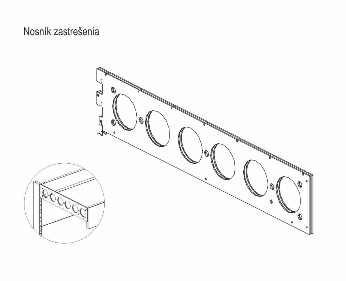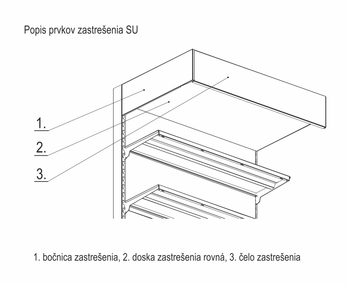 Zostava dielcov na vytvorenie strechy v hornej časti regálového modulu SU.